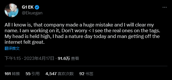 Ekuegan 在该消息后一直没有任何再次发声的迹象。他在这之前接受《福布斯》采访时表示自己并没有这么做的动机,也没有傻到将自己的桌面录制下来。不过在他能够给出确实证据证明自己的清白之前,任何辩证的言语都显得苍白无力。