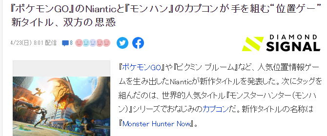 业界分析《怪物猎人Now》 Niantic继宝可梦GO后的新野心