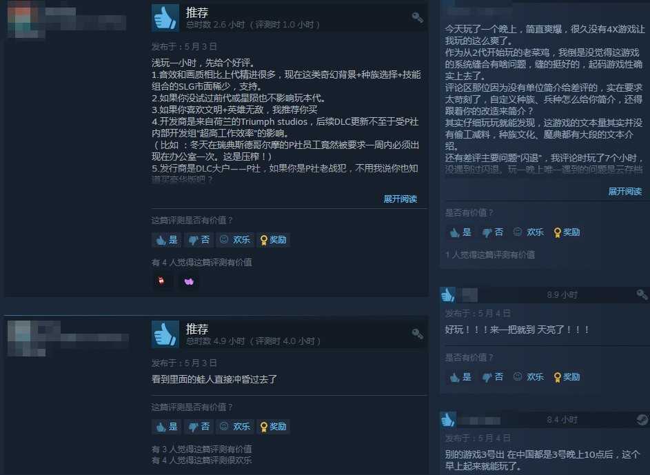 给出好评的玩家认为,游戏很酷,画面与前作相比有巨大提升,游戏性也上去了。看起来就像是魔法门之奇迹文明时代4,玩起来就停不下来了。