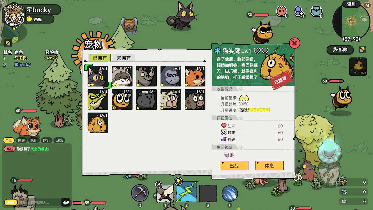 硬货来了,大家可以瞅瞅下边的图,看到什么了吗?没错!BD天赋,我的天,暗黑like的东西也都缝合进来了,简直意想不到。你说游戏死了就重开就算了,还搭载了BD天赋搭配,这谁受得了!这游戏内的天赋目前来看,并不是付费项,都是依靠结算的经验升级后获取的一个天赋点,你可以选择专精抓宠也可以选择专精砍树等等,当然,肝帝=我全都要,全能型人才,又能砍树快,又能抓捕更多宠物等等,总而言之,游戏内的内容度还是比较丰富的,也让喜好生存、冒险类的小编眼前一亮。