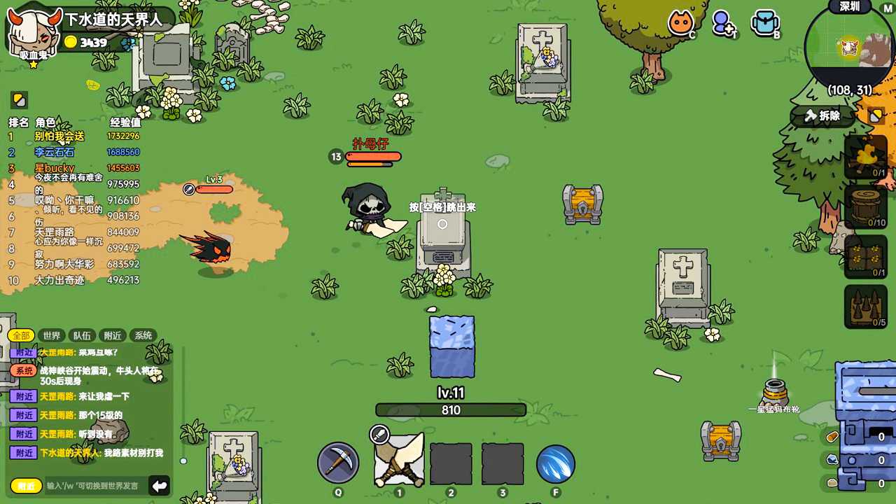说起战斗,这个小编就精神了,必须夸赞一下这个游戏项目组,严重怀疑制作人员都是一些充满恶趣味的直男,正如他们工作室的名称一般(钢之直男工作室)。游戏中的各种角色技能设定花里胡哨,特效也做的非常粗暴,如魔法师下冰雨,死神召唤伙伴,德鲁伊化身狼人等等(怀疑致敬某些游戏);并且这款游戏,地图内出现了大量可交互的物件;例如你路边行走时可能会被藤蔓拽走绑住、或者踩到其他玩家丢的香蕉皮掉入陷阱,以及一个小编觉得最有趣的棺材设定,这个棺材玩家可以藏进去的,无论是被追杀或者偷袭敌人,都是个非常有趣的设定,试想,喊4-5个好友,躲在棺材里,路过一个路人,瞬间棺材跳出4-5个人,大喊德玛西亚的场景。