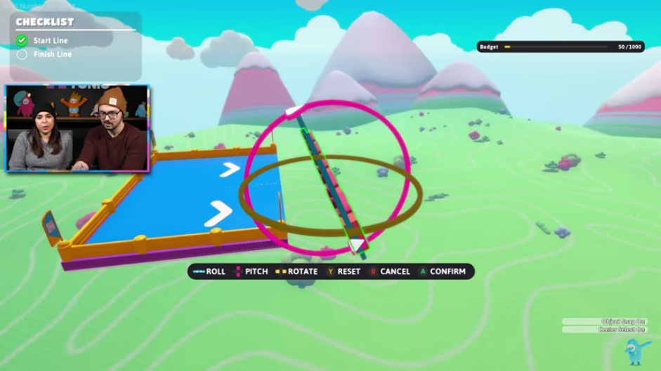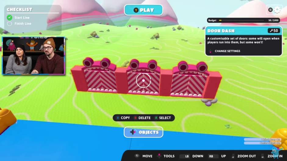 关卡制作者需要先选择回合比赛类型和比赛主题,随后就可以在全新的建造视图里调用详尽分类的可放置物品,例如障碍物和装饰品等。建造工具看起来很强大,所有物品都可以旋转、互相吸附,同时还有多选和复制粘贴功能。Mediatonic 表示“大多数”物品都拥有可调整的属性,包括颜色、门墙上门的数量、传送带的方向等等。