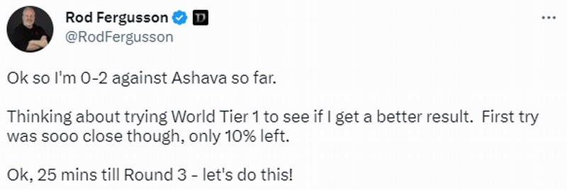 Ashava已经恶名昭彰!据3月初测试统计,玩家每击败Ashava一次,Ashava就会杀死94个玩家。而Fergusson也成了94名玩家中一员。