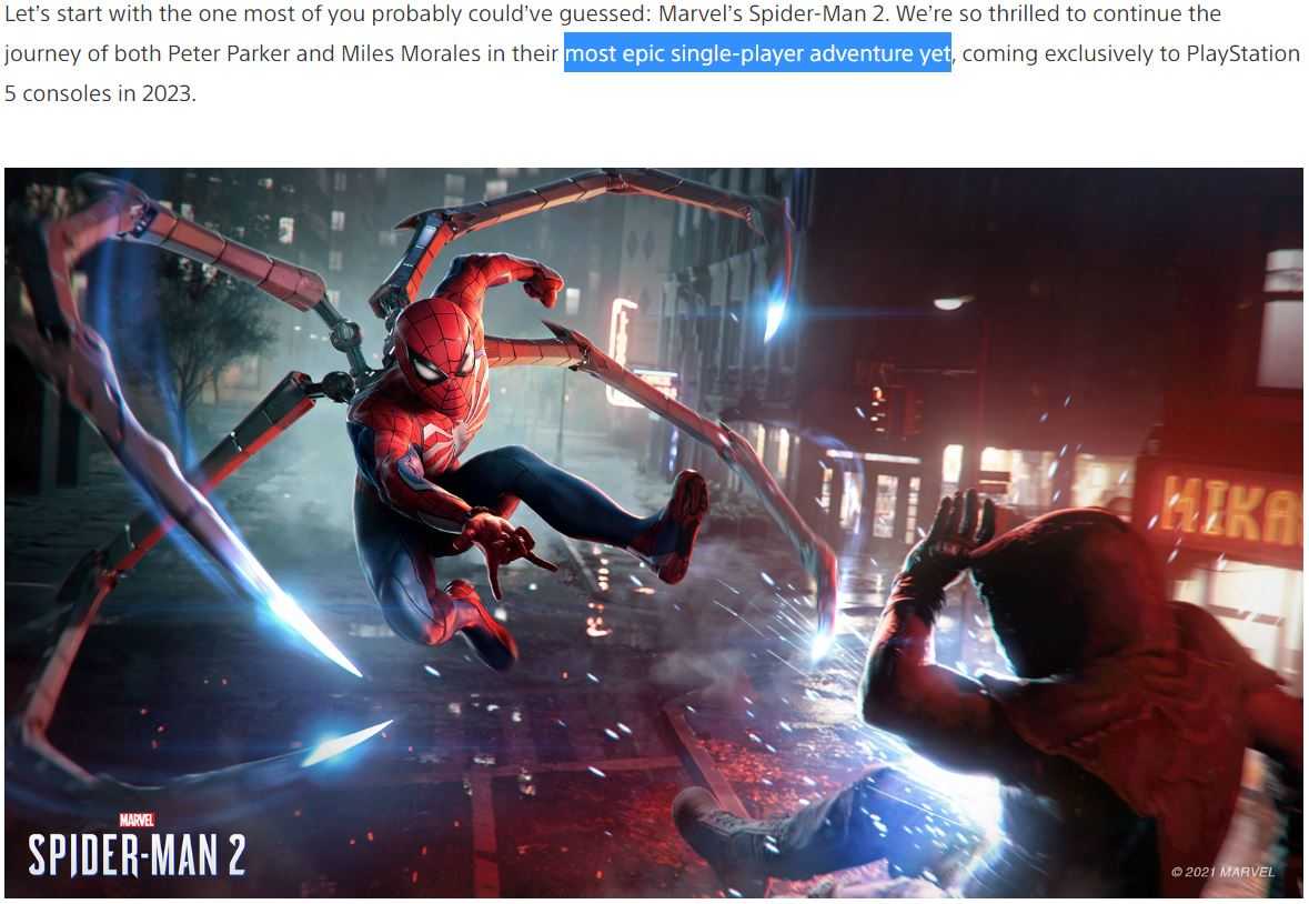 事实上,早在Insomniac官宣《漫威蜘蛛侠2》时就确认这是一个单人游戏。