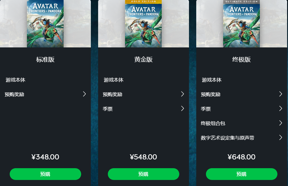 《阿凡达:潘多拉边境》是育碧的阿凡达系列作品,目前已经在育碧商城开启了预购,游戏暂不登陆Steam平台,国区标准版售价348元,黄金版548元,终极版648元,感兴趣的玩家可以了解一下。