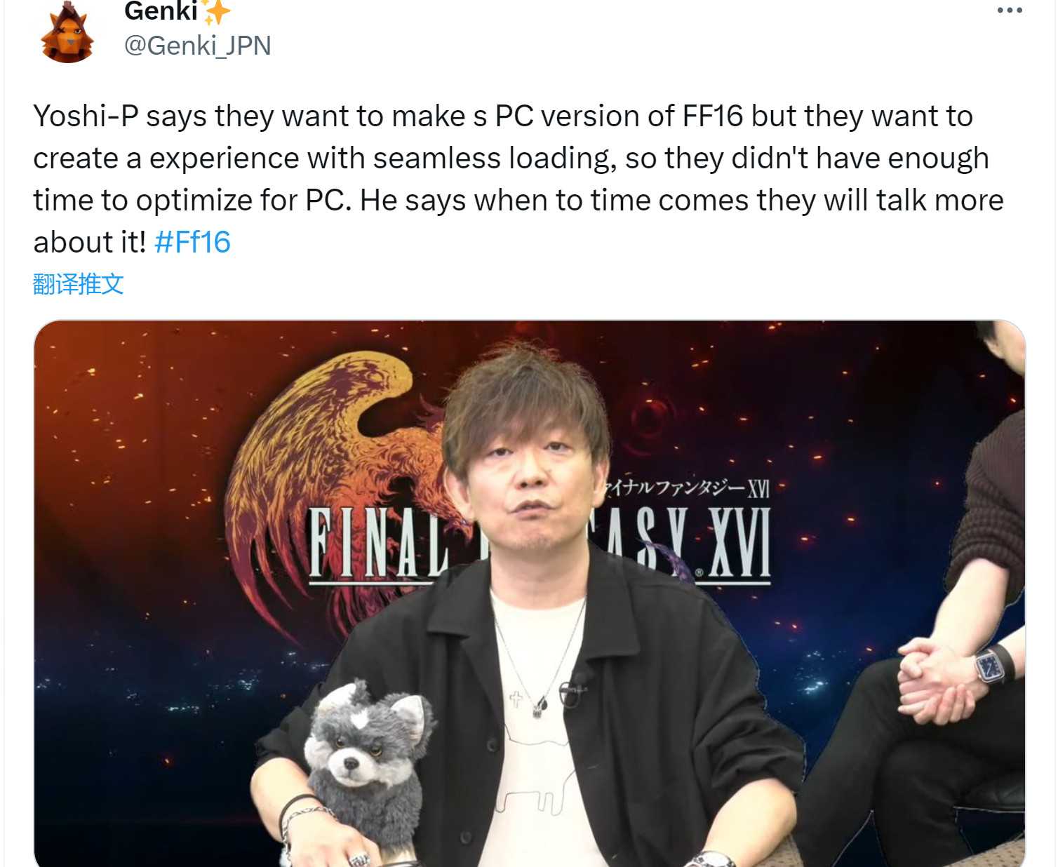 吉田还提到他们想做《最终幻想16》的PC版,但他们想创造一种无缝加载的体验,所以他们没有足够的时间针对PC进行优化。