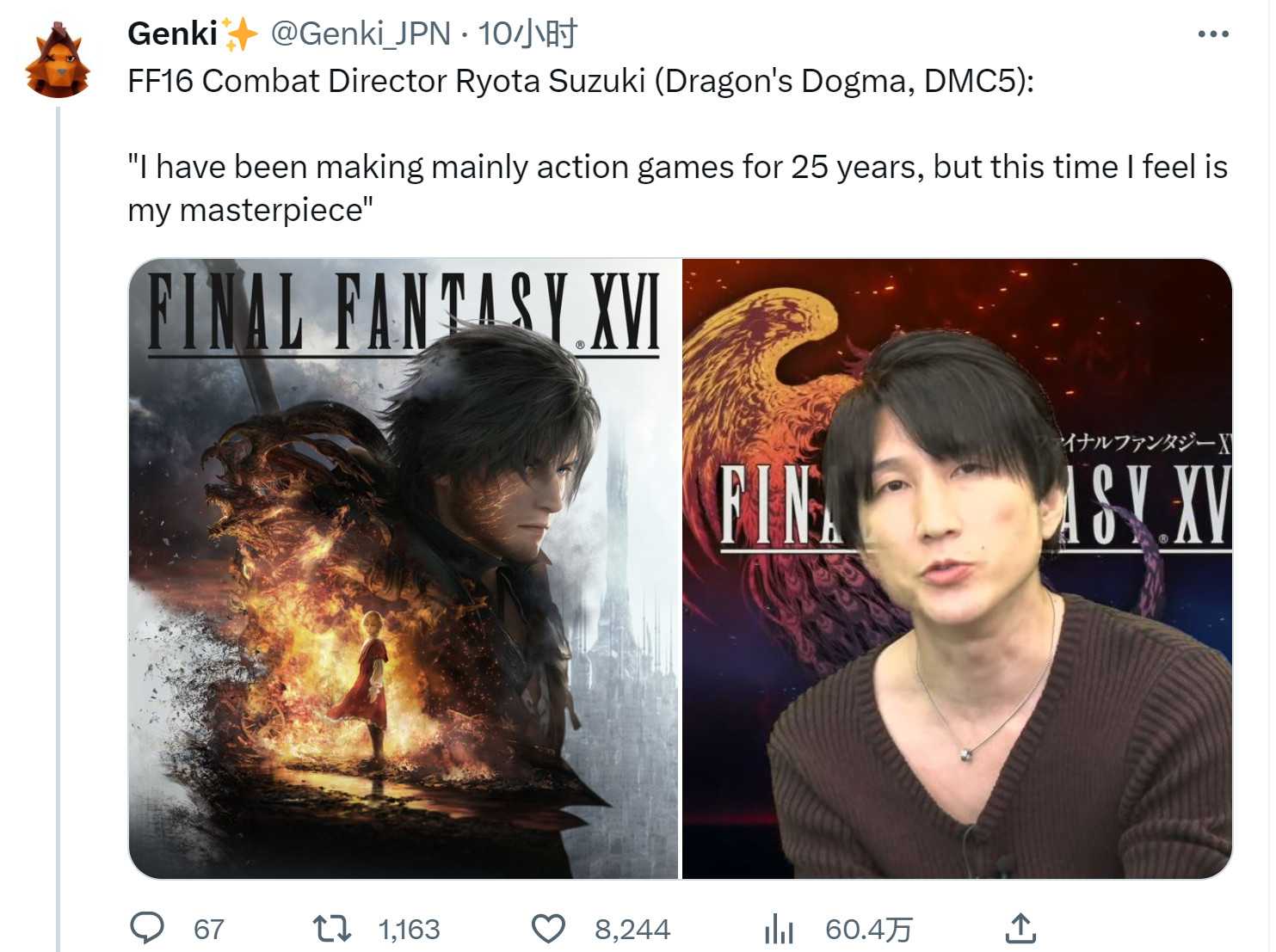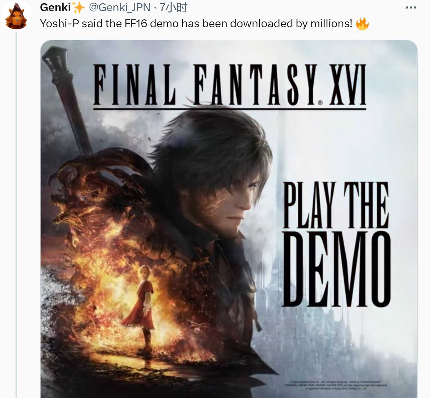 吉田提到《最终幻想16》体验版已经被下载数百万次