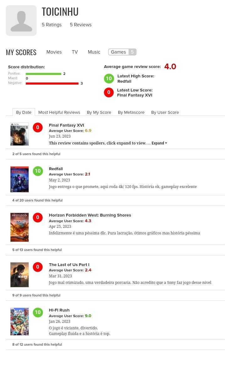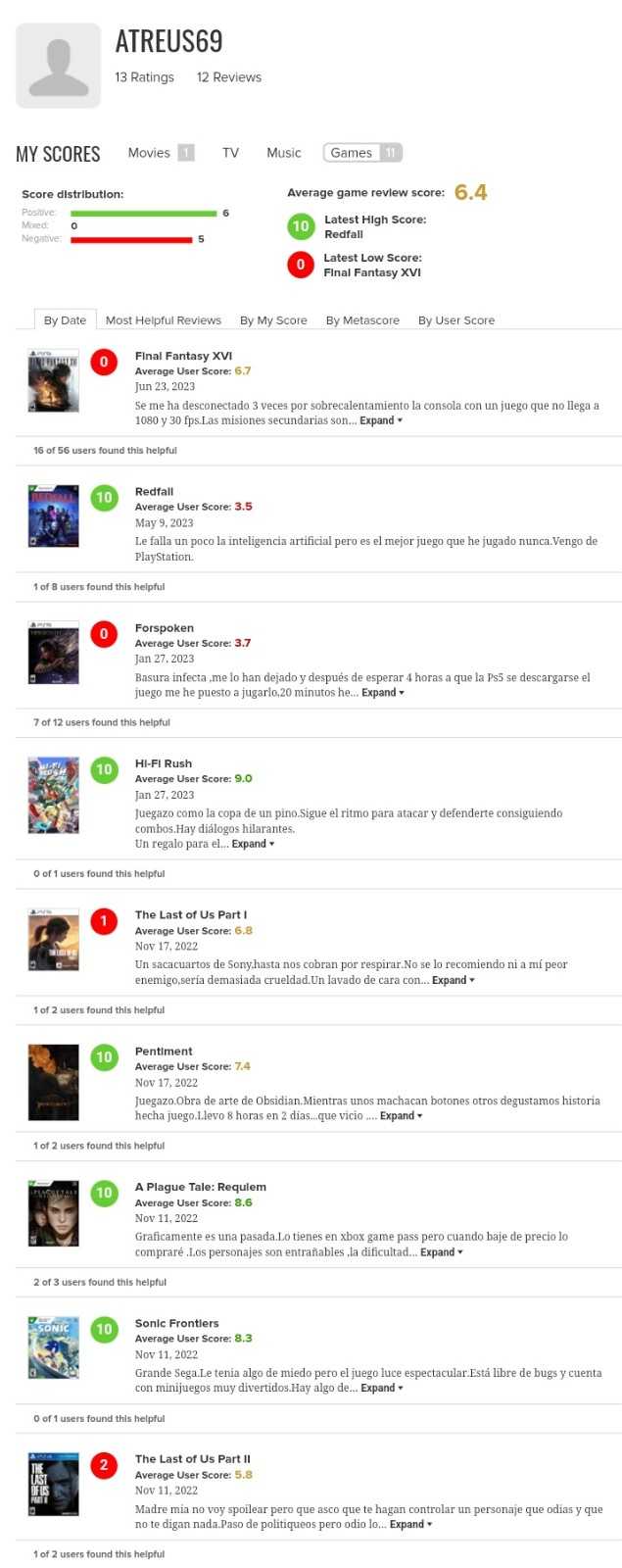 之所以称是恶意,原因在于有国外玩家发现一些打0分的用户的规律:凡是索尼或索尼限时独占的游戏,就给0分,凡是Xbox的游戏就给满分。比如下图中的这两位,给了《红霞岛》10分满分,给了《最终幻想16》和《地平线:西之绝境》0分。