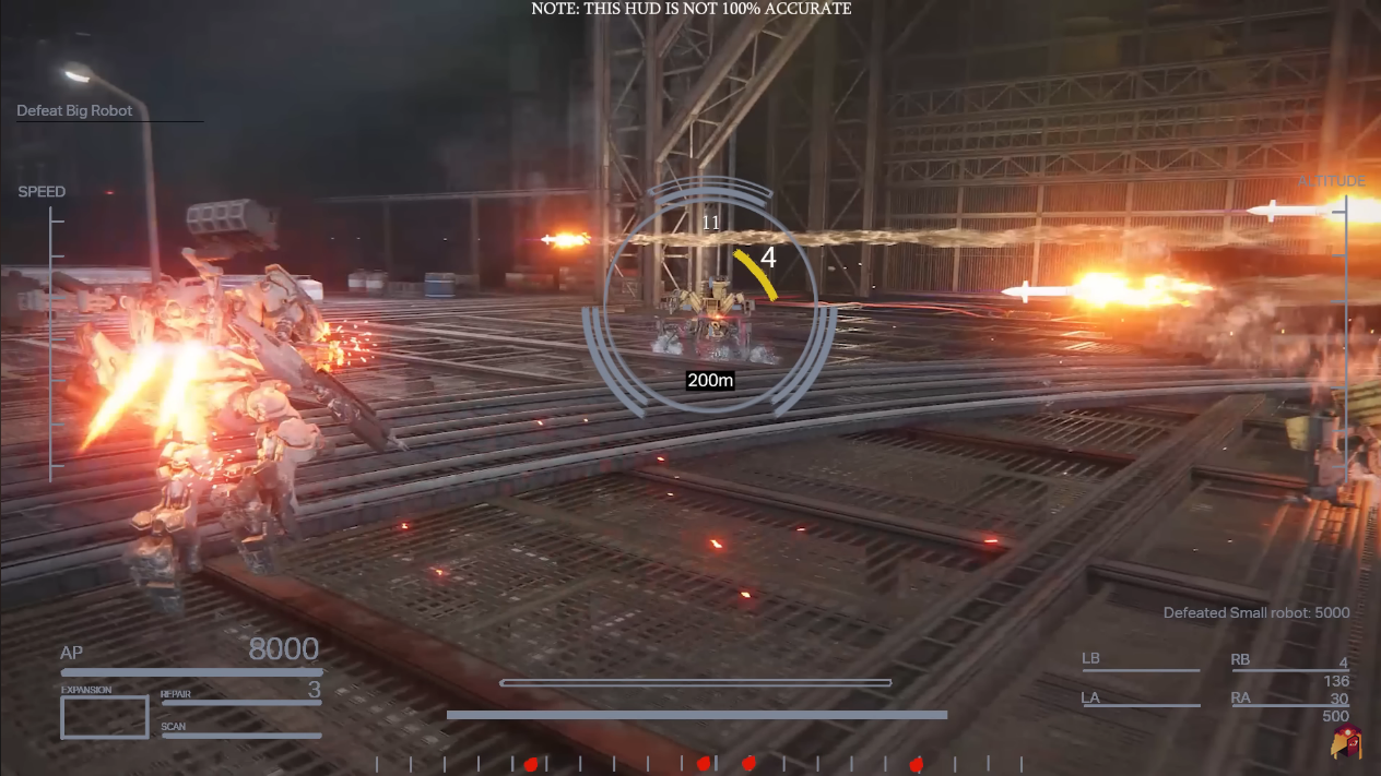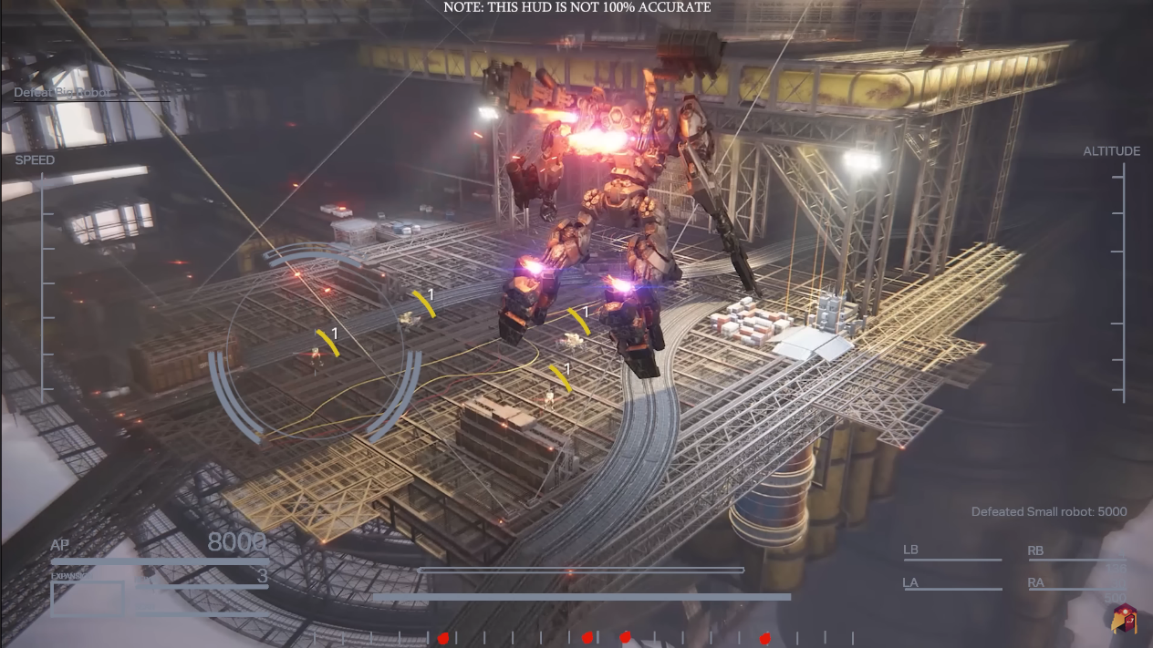 从视频中可以看到,许多游戏将会包含的要素,例如战斗中会有的硬直系统(类似《只狼》),以及可以修改各种机甲零件的机库系统。然而就如之前的视频一样,游戏的 UI 依然被隐藏了起来。