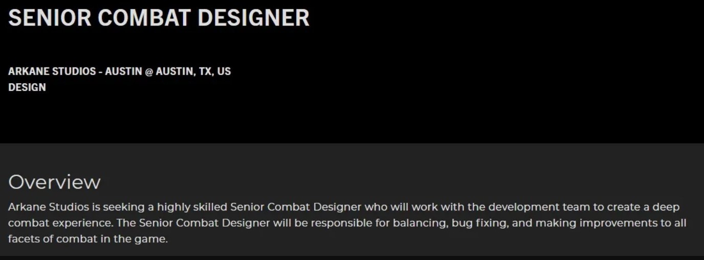 根据Arkane工作室发布的职位描述,新的高级战斗设计师还将负责游戏平衡、修复Bug,并将对游戏各方面进行改进。