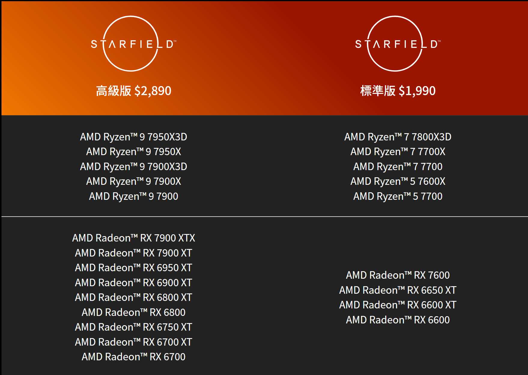 此次捆绑促销的《星空》游戏分为两个版本:标准版和高级版。高级版售价约合92美元,需要购买更高端的AMD CUP或GPU,而标准版(约合63美元)则倾向于比较主流的配置。