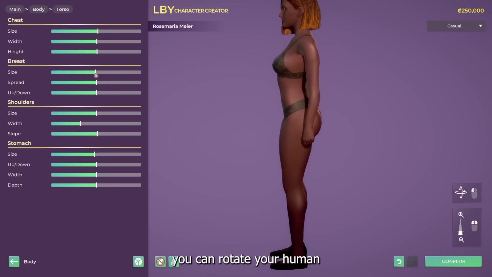 你可以在角色穿着内衣的情况下进行身材定制,以获得最佳可见度,或者查看他们穿上各种衣服后的样子。滑块在这两种情况下都是可操作的。
