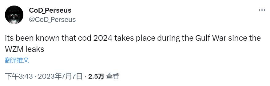 近日,《使命召唤》知名爆料人CoD_Perseus同样发推透露,《使命召唤:黑色行动》新作的背景将设定在海湾战争。