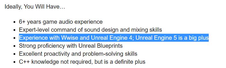 这份招聘信息还确认重生计划在下一款《星球大战绝地》游戏中使用虚幻5引擎
