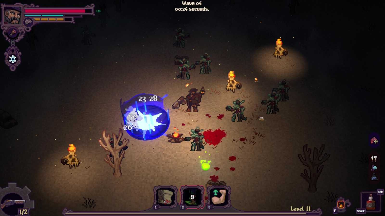 一眼看上去,《When the Light Dies》的确很想俯视角射击生存游戏名作《吸血鬼幸存者》,