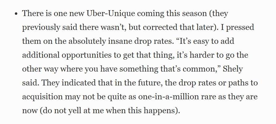 此外,最近《福布斯》记者采访了《暗黑4》总监Joe Shely和总经理Rod Fergusson,他们透露《暗黑4》第一赛季将新增一个超稀有暗金,掉落率为百万分之一。