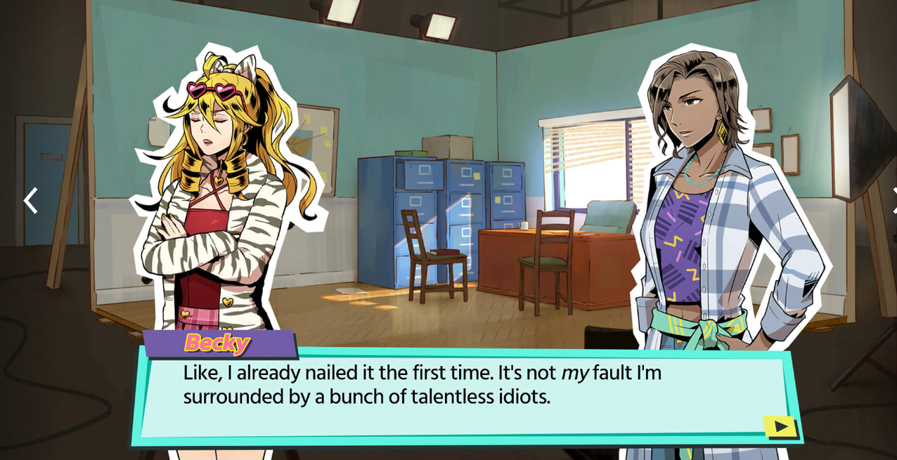 在由驰名作曲家Masakazu Sugimori(《Phoenix Wright: Ace Attorney》,《Ghost Trick》,《Viewtiful Joe》)谱写的富有活力的背景音乐之下,调查一系列涉及电视演播室、光鲜的颁奖典礼、变装俱乐部等的谋杀案。
