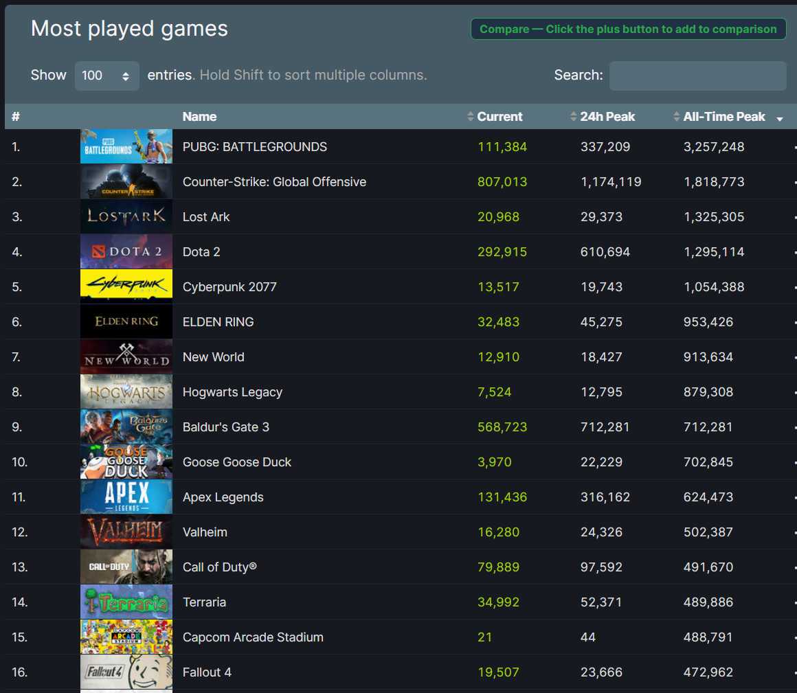 不过这也意味着《博德之门3》正式将Steam“游玩人数最多游戏”最低标准给抬高了,至少要超过70万。外媒PC Gamer表示玩家不必为《Apex英雄》这款免费大逃杀游戏“难过”,因为“《Apex》可以用一大笔钱和当前的玩家数量来擦拭眼泪,而《博德之门3》一年后的玩家数量肯定不会像《Apex》那样稳定”。