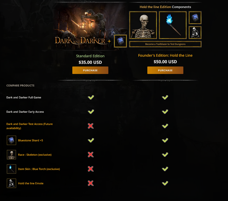 《Dark and Darker》抢先体验只需要购买普通版本(35美元)游戏即可游玩。更贵的“创始人版本”(50美元)将包含特殊外观皮肤和“测试访问权限”。