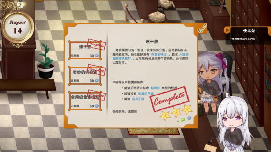 游戏中拥有着近百中不同的溶液,并且根据客人要求的不同,玩家所创造出的每瓶溶液能够产生的效果也各不相同,玩家亦能够尽情地尝试不同的溶液配比,从而创造出能够符合用户预期的合适溶液。