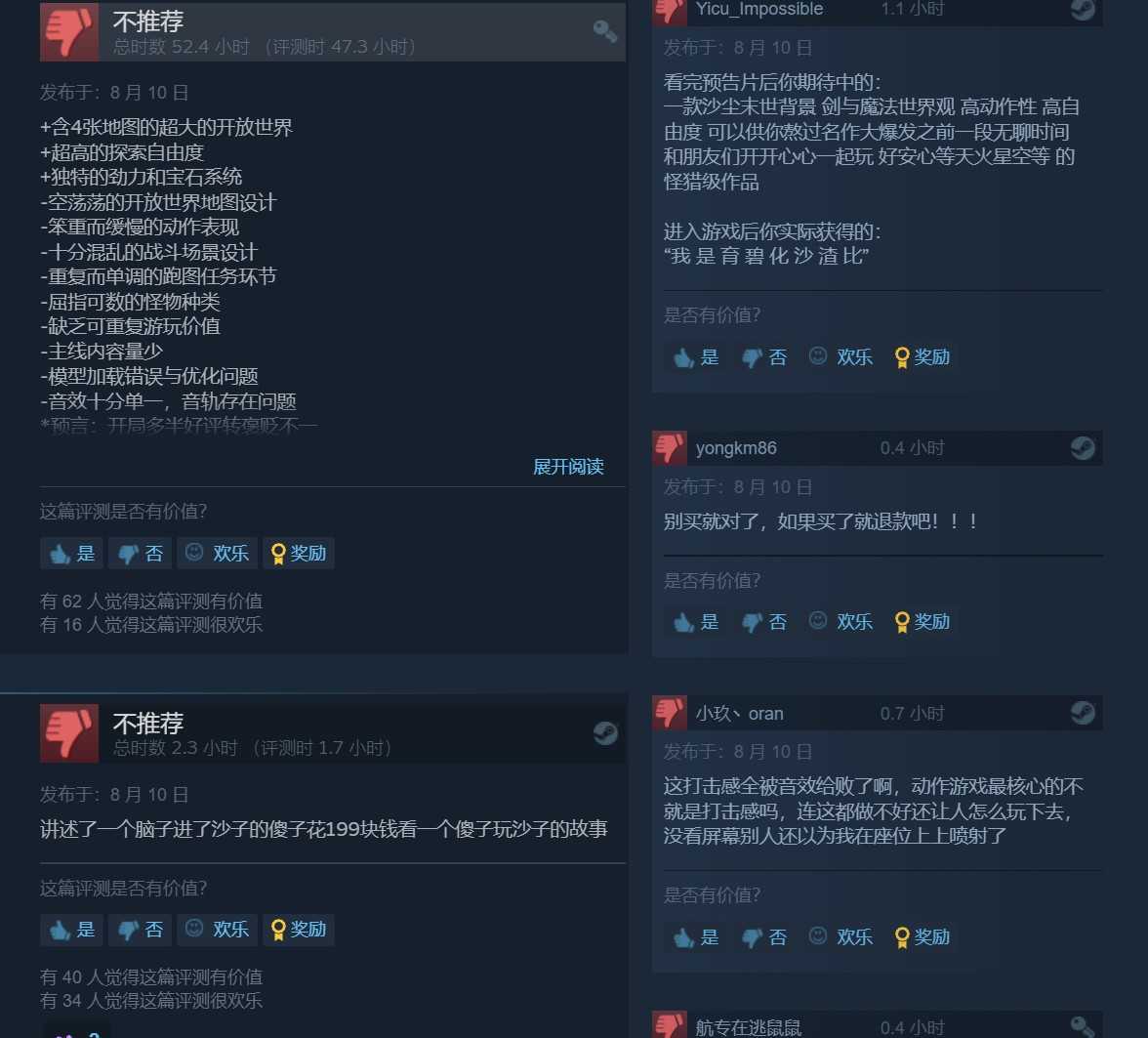 《尘封大陆》Steam中文区评价出现大量差评,大量玩家指出本作的打击感和任务设计是游戏最大的败笔,甚至不如SE的《魔咒之地》。