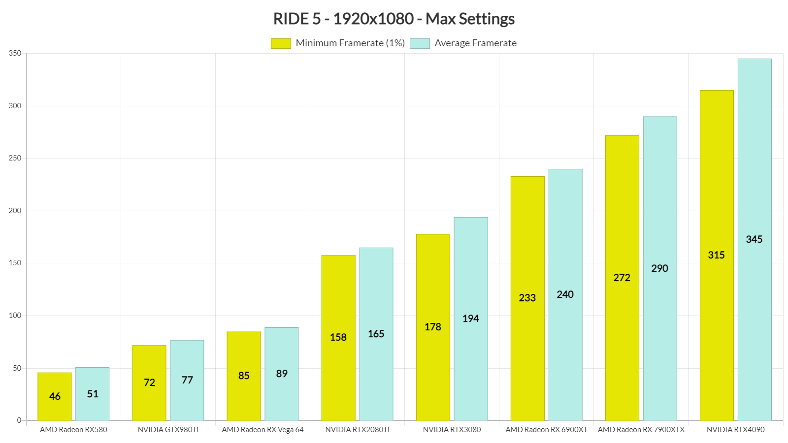 在这篇《极速骑行5》PC版性能分析文章中,我们使用了AMD Ryzen 9 7950X3D、32GB DDR5内存(6000Mhz)、AMD的Radeon RX580、RX Vega 64、RX 6900XT、RX 7900XTX,NVIDIA的GTX980Ti、RTX 2080Ti、RTX 3080和RTX 4090。我们还使用了Windows 10 64位操作系统,GeForce 536.99和Radeon Software Adrenalin 2020 Edition 23.7.2驱动程序。此外,我们还在7950X3D上禁用了第二个CCD。