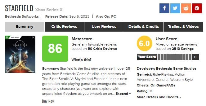 《星空》M站玩家评分解禁:口碑两极分化 优缺点明显