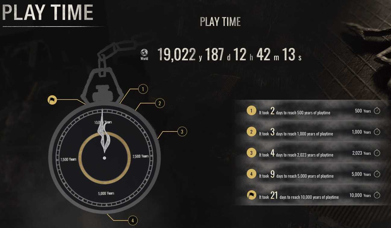 《生化危机4:重制版》全球玩家游戏总时长:19,022年187天12小时42分钟13秒。
