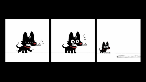 《过木不汪》的主角是一只名为罗伯特的可爱汪汪,这只黑色的小狗对于又~长~又~直~的木棍总是情有独钟,情不自禁的想要把它们叼回家。