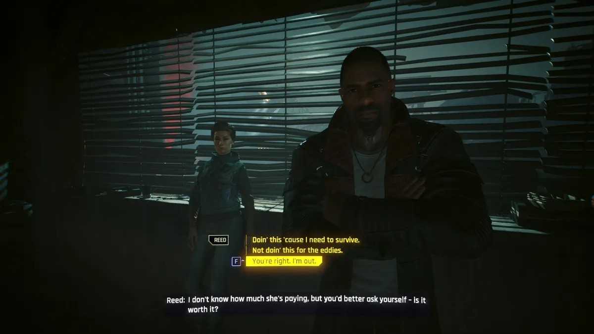 据外媒据PCGamer报道,在资料片主线第四个任务“Lucretia My Reflection”中,与迈尔斯总统和李德交谈时,李德会问玩家一个问题:“我不知道她要付多少钱,但你最好问问自己——这值得吗?”,然后你可以选择一些对话选项。如果你选择“你是对的,我选择离开”,那将是锁死主线的第一步。