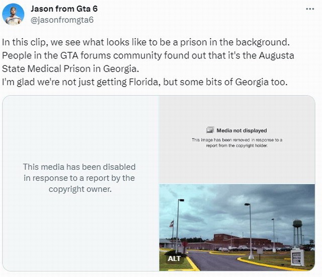 这位网友发现主角位于一个与乔治亚州奥古斯塔州立医疗监狱相似的地点。现实中,乔治亚州与佛罗里达州接壤,但该州距离迈阿密(罪恶之城原型)仍有一段距离。在《GTA6》中将如何设计呢,这是个值得期待的事情。