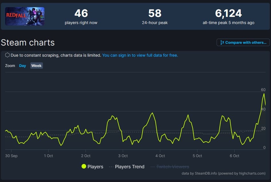 现在据Steamdb数据显示,《红霞岛》Steam玩家数量增加,上涨近66%。但该作原本的玩家数量就很少,所以也只是从35人上升至58人,增加了23人,没有破百这就有些尴尬了。