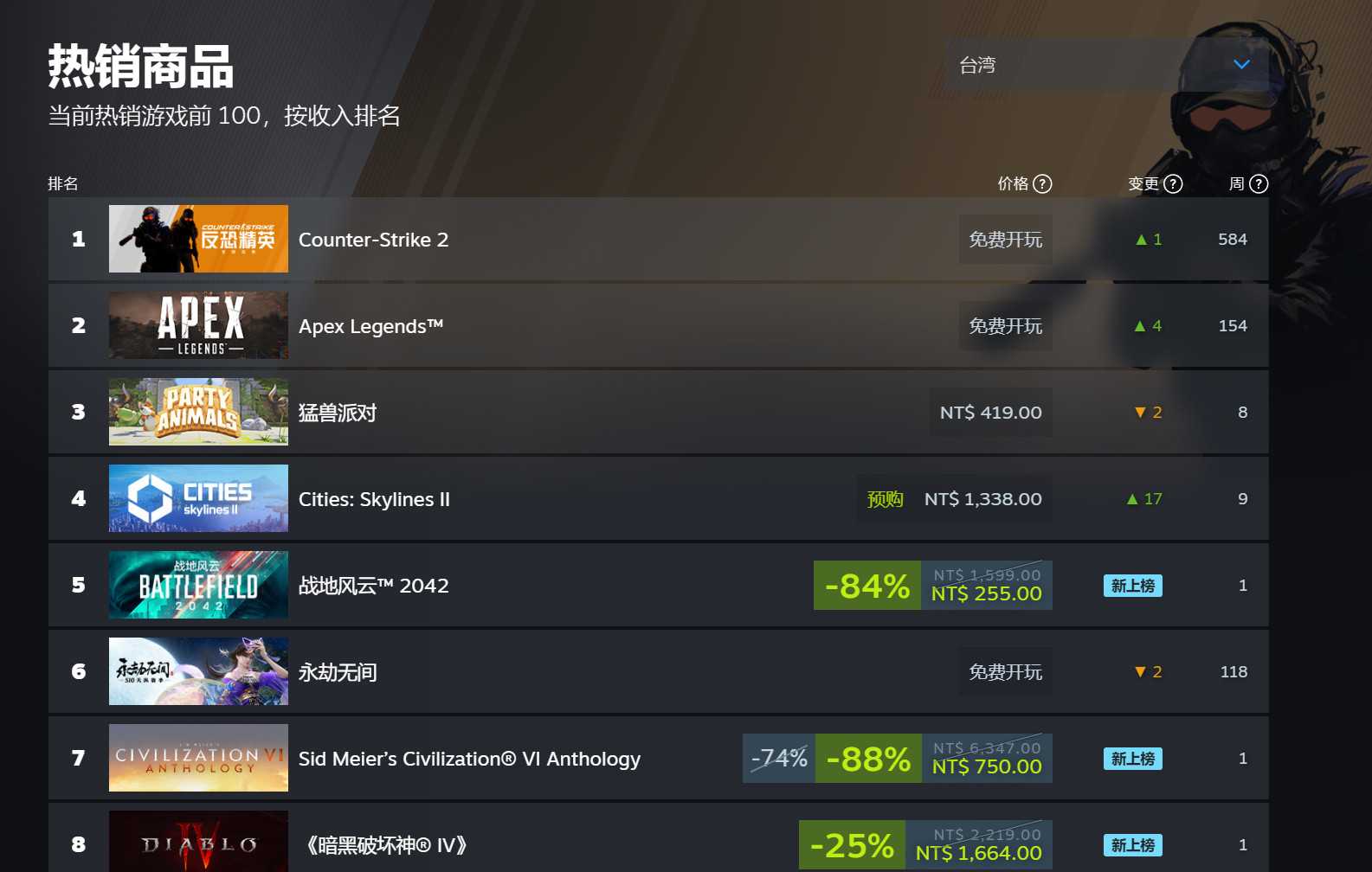 截止到目前,《战地2042》仍然是Steam上最畅销的游戏之一,其排名超过了《暗黑破坏神4》和《使命召唤》。