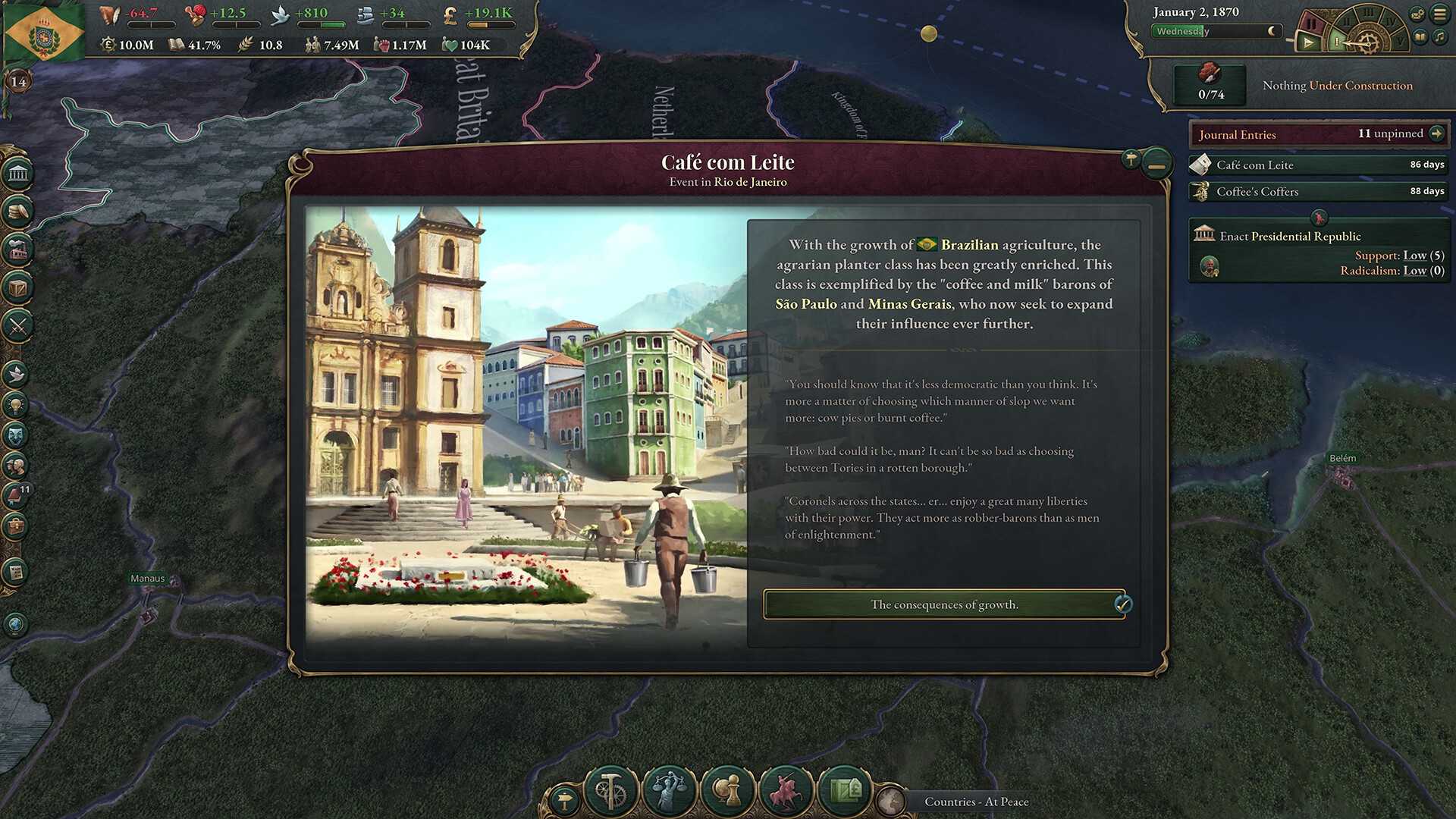 拥有丰富人口、文化和资源的南美洲,在进入维多利亚时代时将握有诸多优势。但也有许多的挑战正等着那些刚刚摆脱欧洲统治势力的国家。在《Victoria 3》的全新地区内容包《Colossus of the South》中,于南半球的未来抢下一席之地。