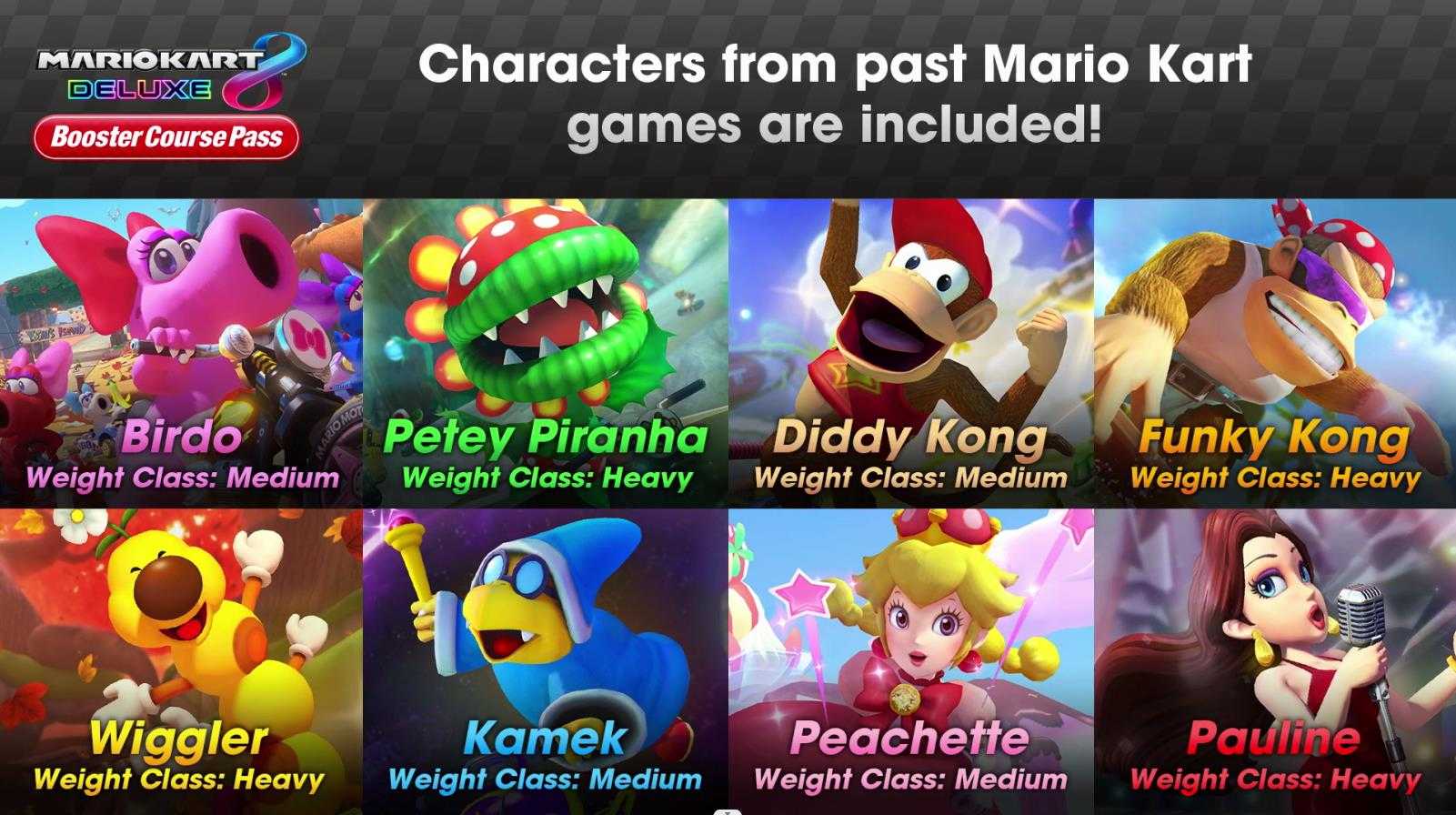 此外还将新增曾在《马里奥赛车:双重冲击》里登场的“狄狄刚”、《马里奥赛车Wii》里的“酷喜刚”、《马里奥赛车巡回赛》中的“波琳”和“奇诺比姬公主”4位新角色。