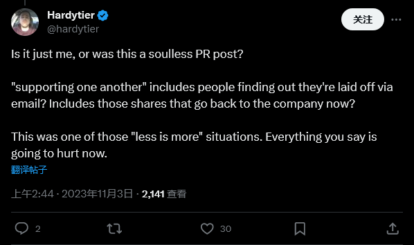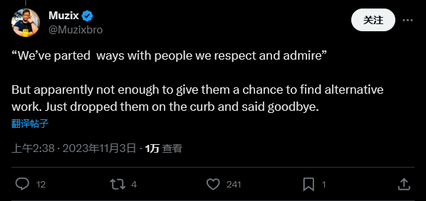 Bungie 在声明中写道:“这是我们工作室史上最艰难的几周之一,因为我们已经与我们尊敬和钦佩的人分离。这一周我们一直在互相支持,包括那些依然在公司,以及不再在工作室的朋友和同事。”