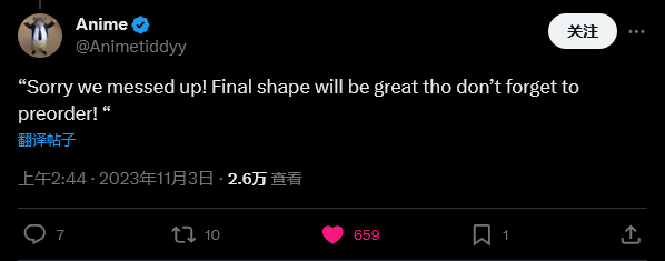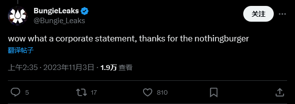 “我们像感谢所有人对《光陨之秋》和最近几个赛季的反馈和担忧,以及你们对《终焉之形》揭晓的回应。我们知道我们已经失去了你们的很多信任。《命运》需要惊喜和喜悦。我们在这方面做得还不够,这种情况会有所改变。”