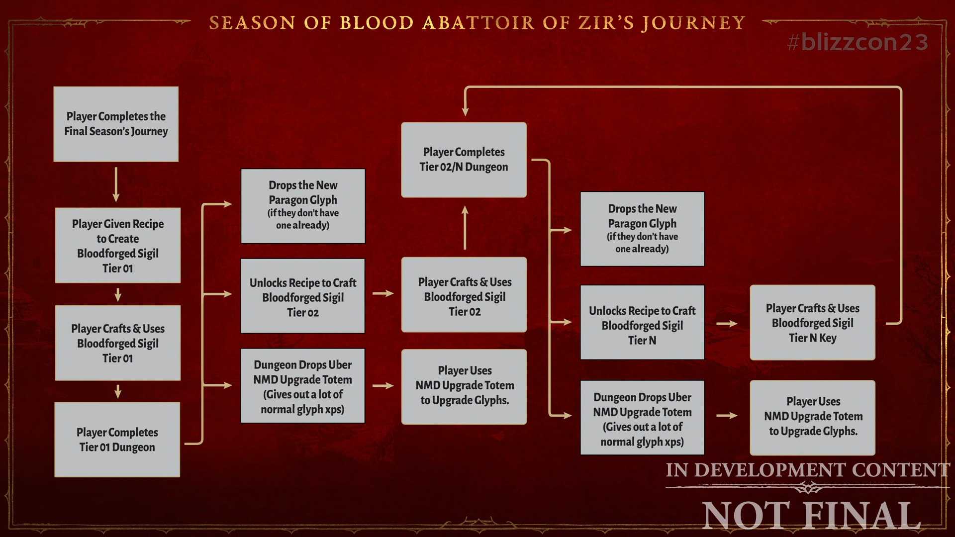 自 12 月 6 日起至 1 月 24 日,玩家将在完成赛季旅程的最终阶段后进入臟腑通道,透过这个赛季事件将玩家的吸血鬼异能推向极限。齐尔的屠宰场是最终极的挑战,仅推荐给已将自身流派和角色臻至登峰造极的等级 100 角色参与。值得注意的是,所有在齐尔的屠宰场获得的奖励只会持续到血之赛季结束。