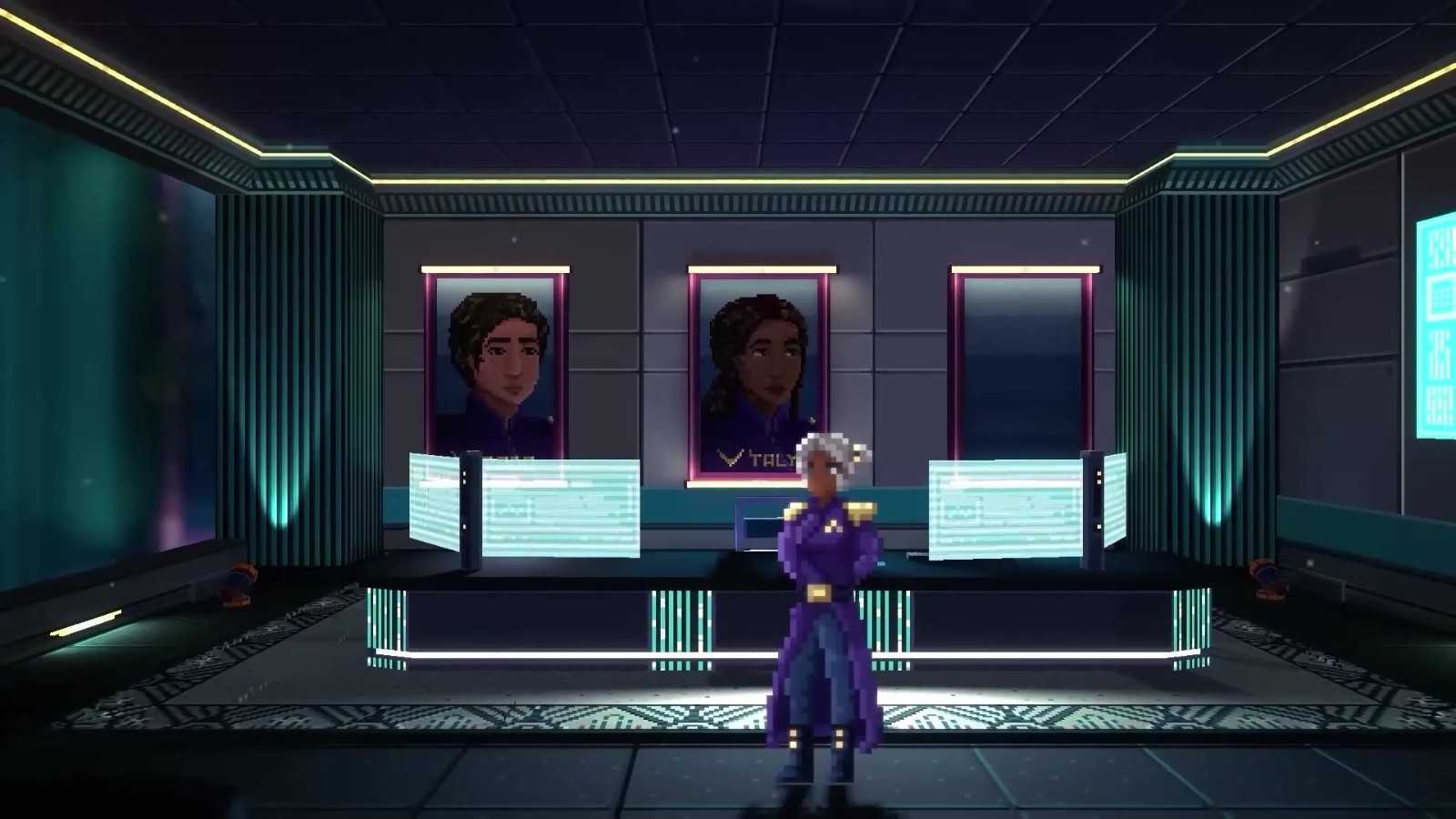 《地平线之间》是一款现代风格的2.5D像素冒险游戏,它以分支叙事的形式创造了一个半开放的游戏世界。DigiTales团队从他们的第一款游戏《Lacuna》中吸取了许多经验教训,为侦探解谜游戏设计了诸多解决方案,以最大限度地发挥玩家在调查过程中作用——同时维持了言之有物的紧凑叙事节奏,引导玩家思考自己的道德标准,并对船上的失控状况做出愈发艰难的决定。