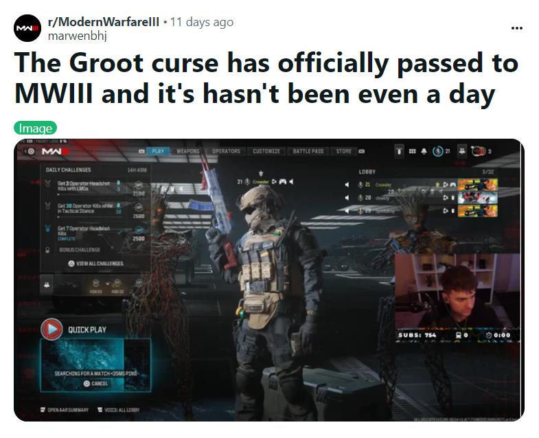 《使命召唤:现代战争3》中臭名昭著的“格鲁特”皮肤正在修复中(使命召唤现代战争2下载)