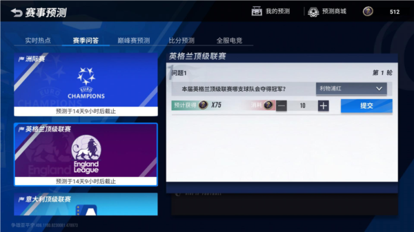 每位球迷都有自己最心仪的球队,希望其能于所在联赛中获得最终冠军。本赛季的赛季问答将于11月16日更新后开启,玩家可以选择心目中的各大联赛冠军归属进行预测。