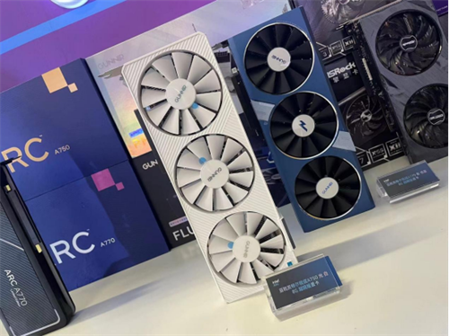 英特尔锐炫显卡在上海研发中心召开活动,期间分享了锐炫显卡的最 新进展,并且在现场还介绍了众多的AIC合作伙伴产品,包括蓝戟、华擎、宏碁、撼与等,其中宏碁是今年新加入的品牌,在非公版的显卡设计上非常酷炫,下了非常大的功夫。充分说明了英特尔锐炫显卡拥有非常强大的行业生命力和产品力,获得了行业内一线品牌合作商的信赖和认可。
