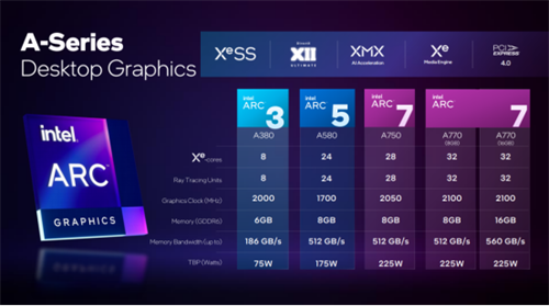 另外10月份还有一个重要的事情,那就是英特尔锐炫家族迎来了新成员,Arc A580独立显卡,这款显卡拥有24个Xe核心、384个EU和3072个ALU,默认频率为1700MHz,Boost频率高达2400MHz,提供了8GB的GDDR6显存一节512GB/s的带宽,能够实现1080P分辨率下,极 致游戏体验,这也完全补全了目前英特尔锐炫家族的中端显卡部分,产品线变得更为完备,为广大用户提供了更多的选择。