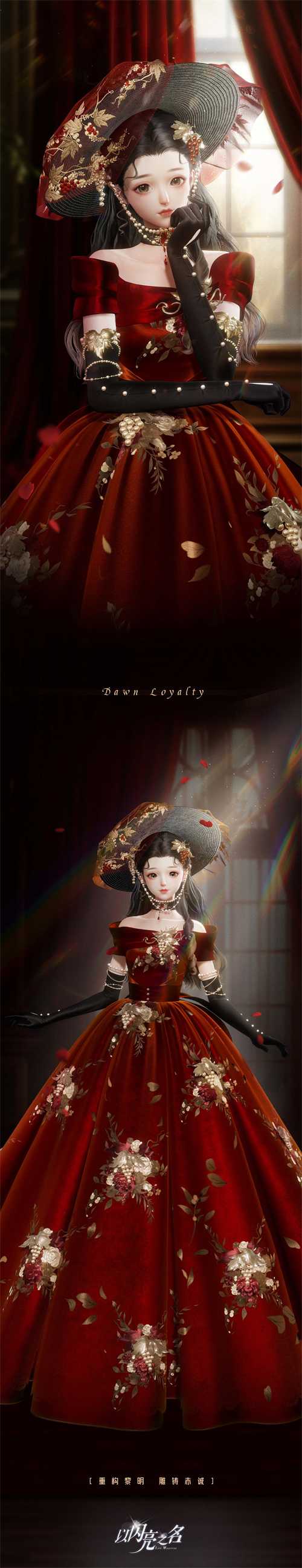 风忆佳期套装设定不只是对经典电影风格的致敬,更是对19世纪新洛可可时期服饰风格的传承与创新。裙形的设计灵感来自于克里诺林时代女性优雅长裙,通过现代的剪裁和细节处理,展现出更加时尚、优雅和浪漫的风格。上半身一字肩设计十分优雅,突出了女性身材的曲线之美,使整个造型更加婀娜多姿。大裙摆的设计则让裙子显得更加华丽、飘逸,走动时更是充满动感。面料方面,选用了质地柔软、光泽自然的绸缎,使裙子更加飘逸、优雅。