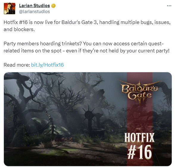 《博德之门3》在近日上线了2024年的首个热修复补丁,本次更新优化了一部分游戏性能同时修复了一些BUG,而拉瑞安工作室表示之后还会有一个重大更新,作为2024年的开端,具体的信息感兴趣的玩家可以了解一下。