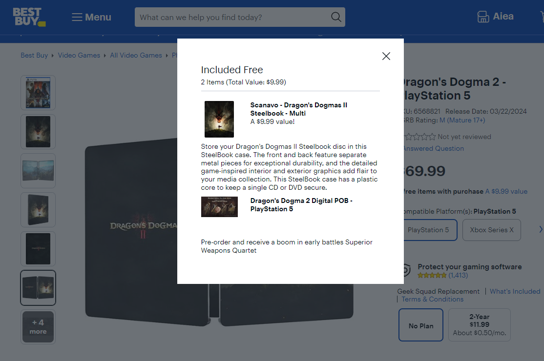 值得注意的是,百思买商城中并没有《龙之信条2》PC实体版的选项,也没有豪华版的实体版售卖。