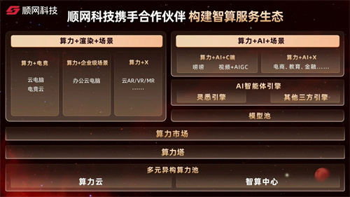 在构建智算服务生态的整体架构下,顺网科技以算力云、智算中心为算力池支撑底座,以算力塔作为算力调度平台,通过算力市场进行交易和支付。这一体系共同不仅为顺网在AI APP的五层开发范式提供了充分的赋能和支撑,同时也为电竞、企业级、云AR/VR/MR等场景提供强大的算力能力。顺网科技希望通过这一智算服务体系,与合作伙伴一起,共同为各行业各场景提供优质的智算服务。