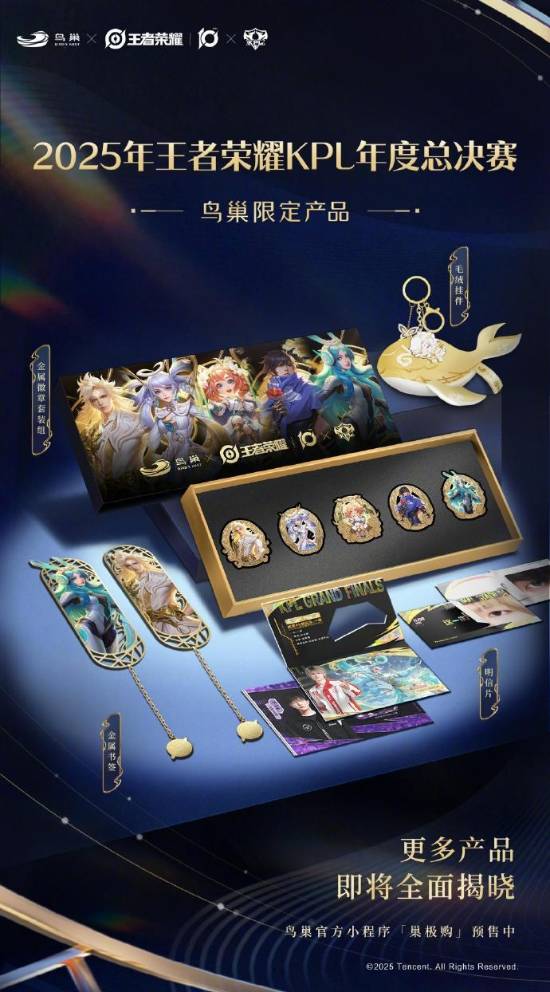 2025-10-28《王者荣耀》2025 KPL年度总决赛将于11月8日在北京国家体育场“鸟巢”拉开战幕。 官方同时晒出鸟巢限定产品包括金属徽章套装组、毛绒挂件、金属书签以及明信片等,更多产品10月29日即将全面揭晓!本次年度总决赛同步设置
