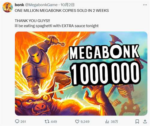 《Megabonk》于今年9月上线,并很快突破百万销量。