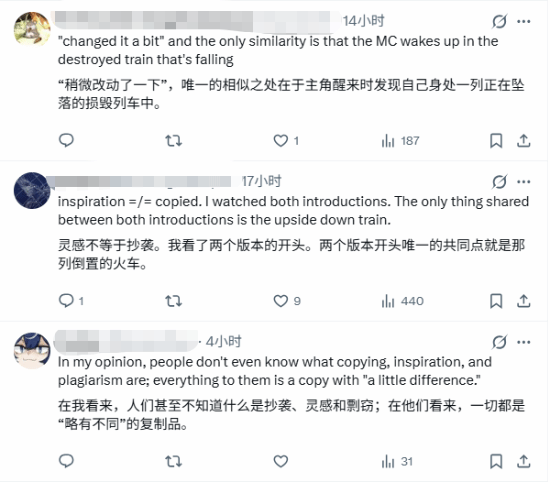 “这一段动画演出都是火车遭遇事故,玩家从脱轨后下坠的火车尾部逃出并抓住栏杆,简直就是一模一样!”